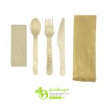 SET DE CUBIERTOS DE MADERA CON SERVILLETA